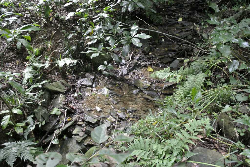 煮沸推奨と言う事も有りますので、水源はパイプ直上の沢なのか??と思いまして、貴兄が停めたであろうバイクの辺りから登っていく小道に入った所、程なくこの沢に併行し始めました。