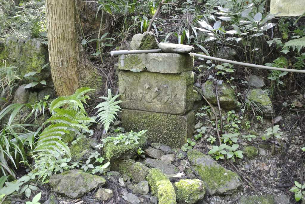 写真撮りながらあちこち見ていると沢沿いにパイプが伸びているのでたどってみたら、小さな水を貯めるところに行き着き、そこには沢水が流れ込んでいます。「これ湧き水じゃない・・・」