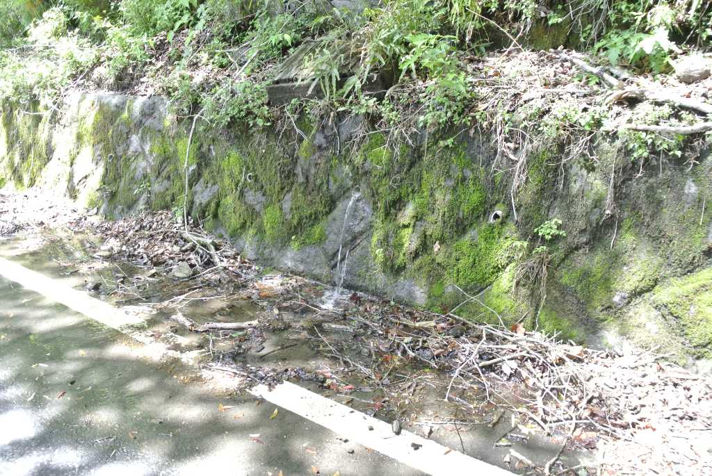 道路沿いにあってすぐに見つかります。壁面にあるパイプから水が出ていますが、排水がうまくできてないので水が溜まってしまい、足元が悪いです。