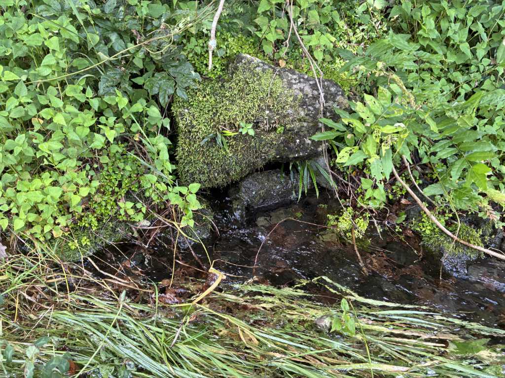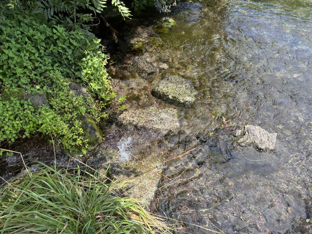 湧き水の反対側へ来ると、敷石がありましたがやはり水に沈んでしまっていました。