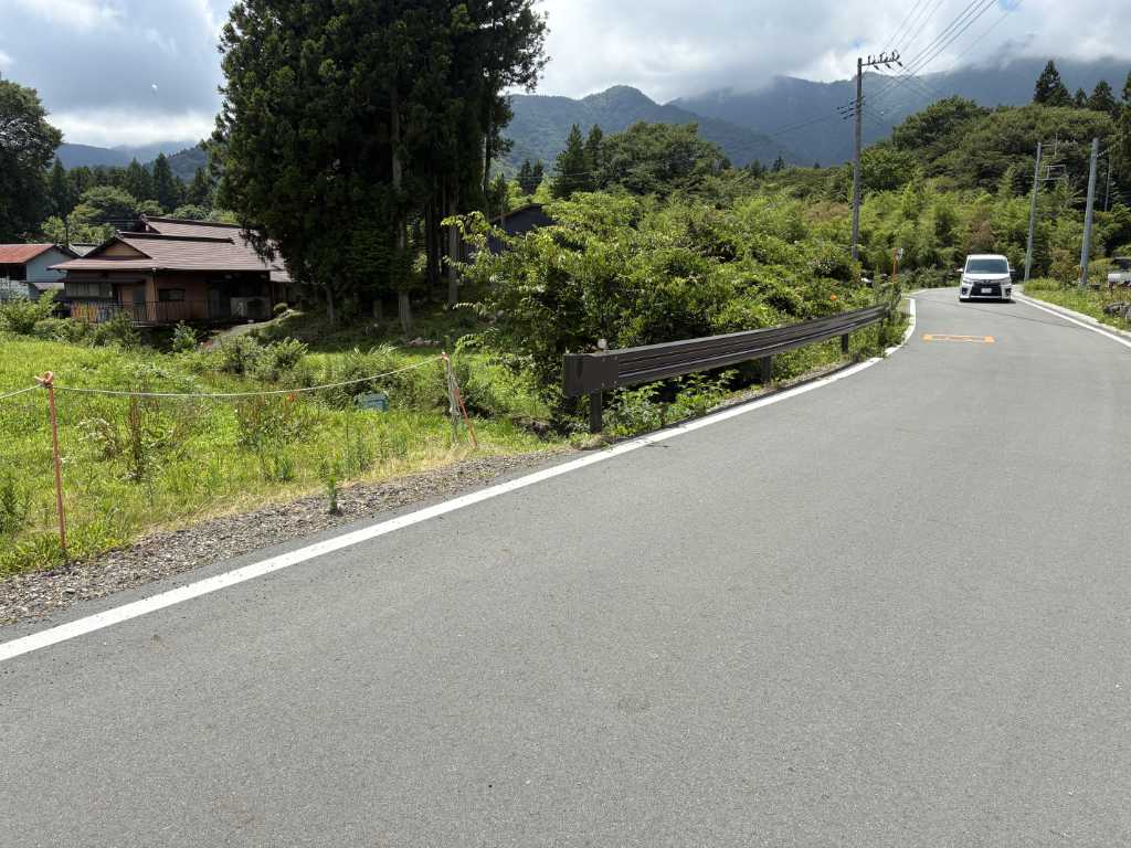 反対側にある敷石へ行くには、道路をガードレールから30mくらい進み、引き返すように斜面を下ります。