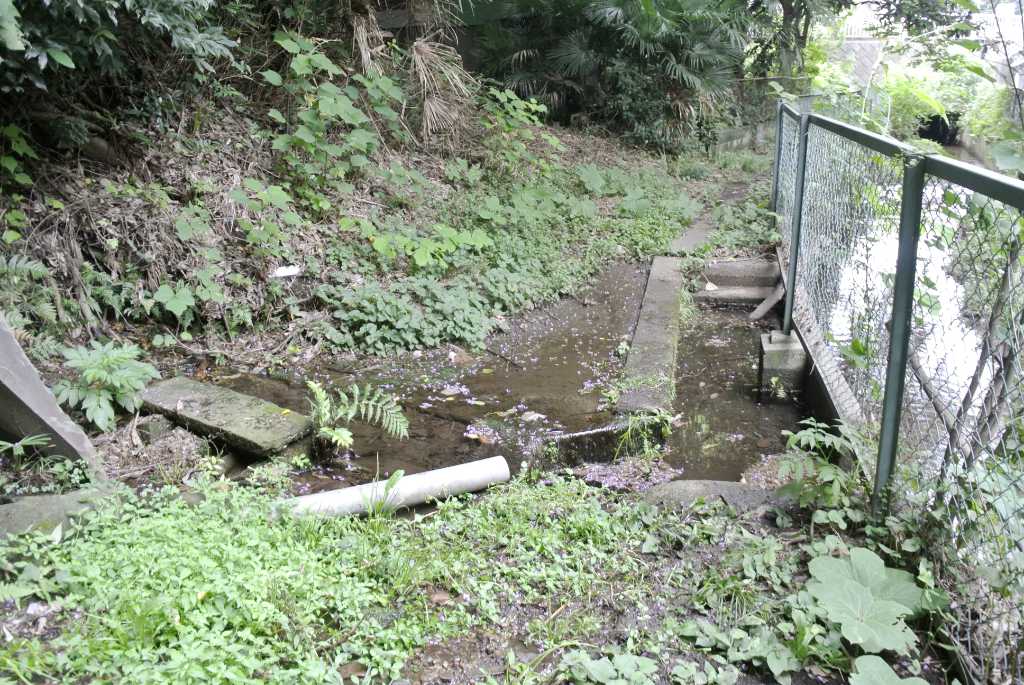 国道254号「英(はなぶさ)インター」から川越方面へ向かって200mくらいにあるバス停「中野」の手前の通路を下っていくと水路があります。