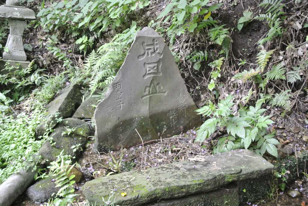 水場には三角形の「成田山」と彫られた石碑がありますが、もともとは違う形だったのが破損したように見えました。別のところから移設したようにも見えます。他にも祠や石像がありました。