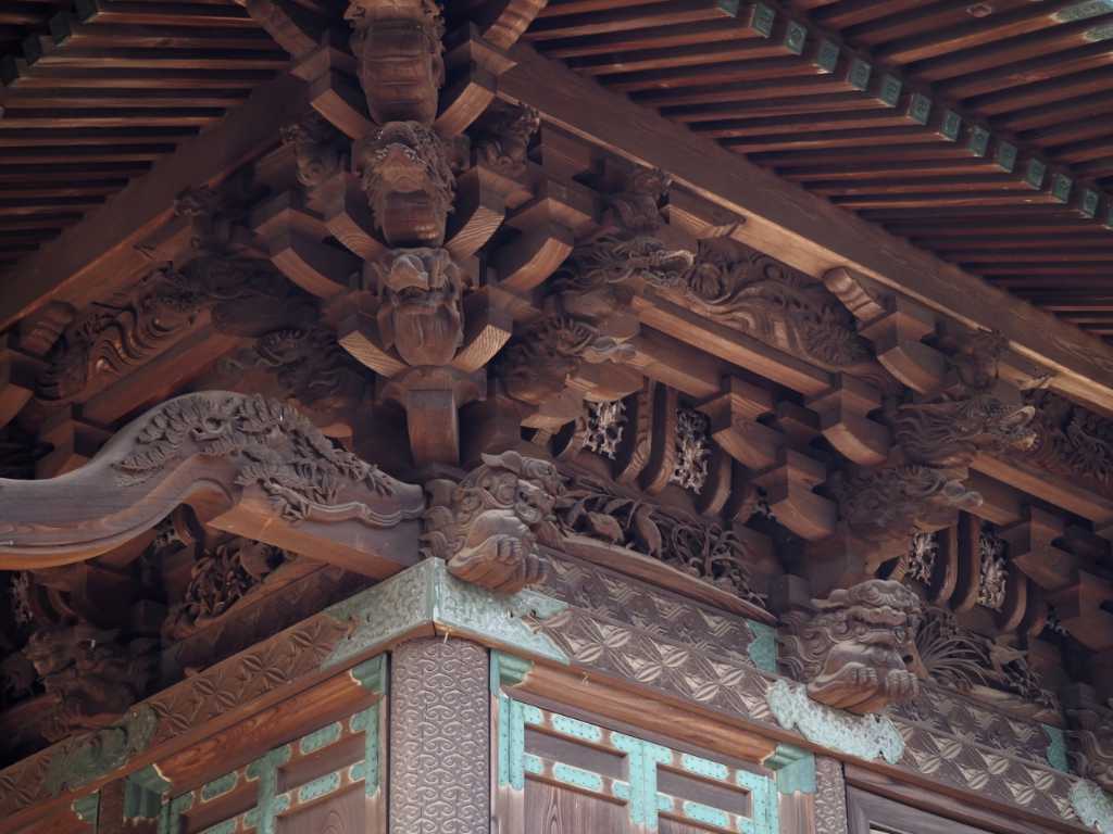 令和4年で創記1100年だそうです。本殿は江戸時代末期とそれほど古いものではありませんが、彫刻が多用されており、陰影が多く重厚な印象です。塗装されてないのも良い感じです。