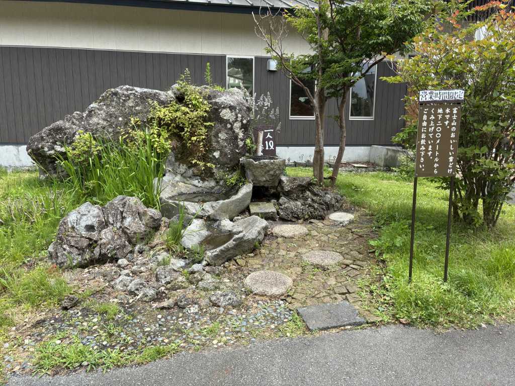 なかなか凝った造りの水場です。採水口は1つで、水量は少なめ。掲示によると、地下200mから汲み上げているとのこと。