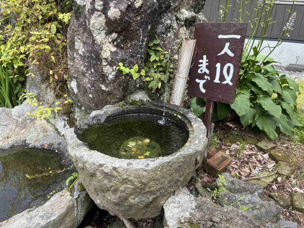 看板にもありますが、私有地内の水場ですので節度を持って水汲みをしましょう。